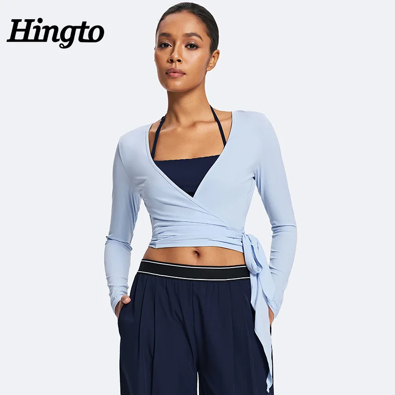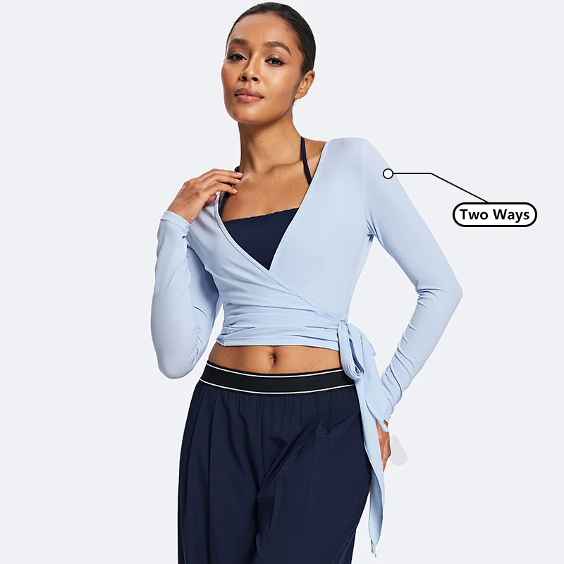Custom Long Sleeve Women Deep V Neck Pilates Blouse Lightweight Yoga Shirts Manufacture Soft Active Yoga Top Outdoor Crop Shirts